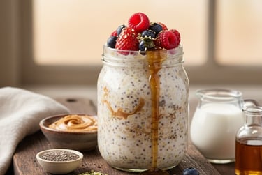 Une recette ultra-simple, sans cuisson, prête en 2 minutes la veille. Parfaite pour un petit-déjeuner riche en fibres et en protéines.